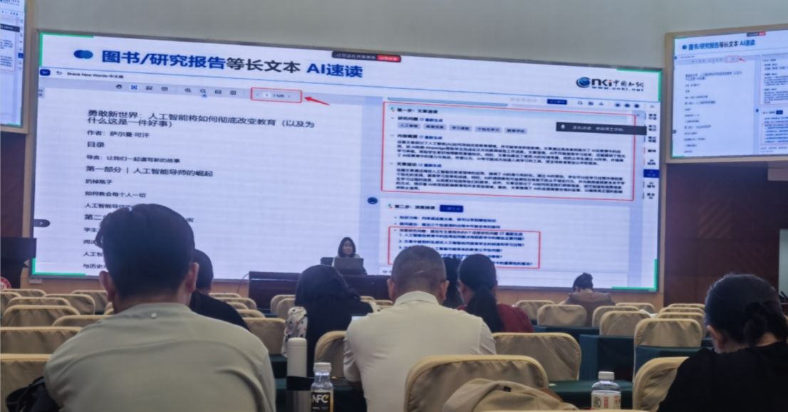 同方知网高级培训讲师谈洁则带来“AI赋能课题创新与高效科研”实战指南,解锁知网AI工具链:通过“AI问答”输入研究意向,“AI选题推荐”即时生成方向,“研究态势分析”一图呈现领域热点与空白,为创新课题提供数据指引;“长文本AI速读”提炼核心,“全文/划词翻译”秒解语言障碍,多篇文献AI专题探究实现高效总结与对比分析;AI辅助梳理文献脉络,结合思维导图理清逻辑,精准定位研究切入点,并自动生成符合规范的综述初稿;“华知文思AI+教研知识库”帮助教师沉淀、管理科研资料,实现个人知识库云构建。